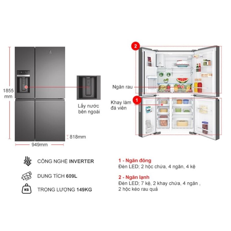Tủ Lạnh 4 cánh Multi Doors Inverter 609 Lít Electrolux EQE6879A-B